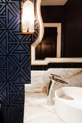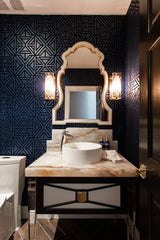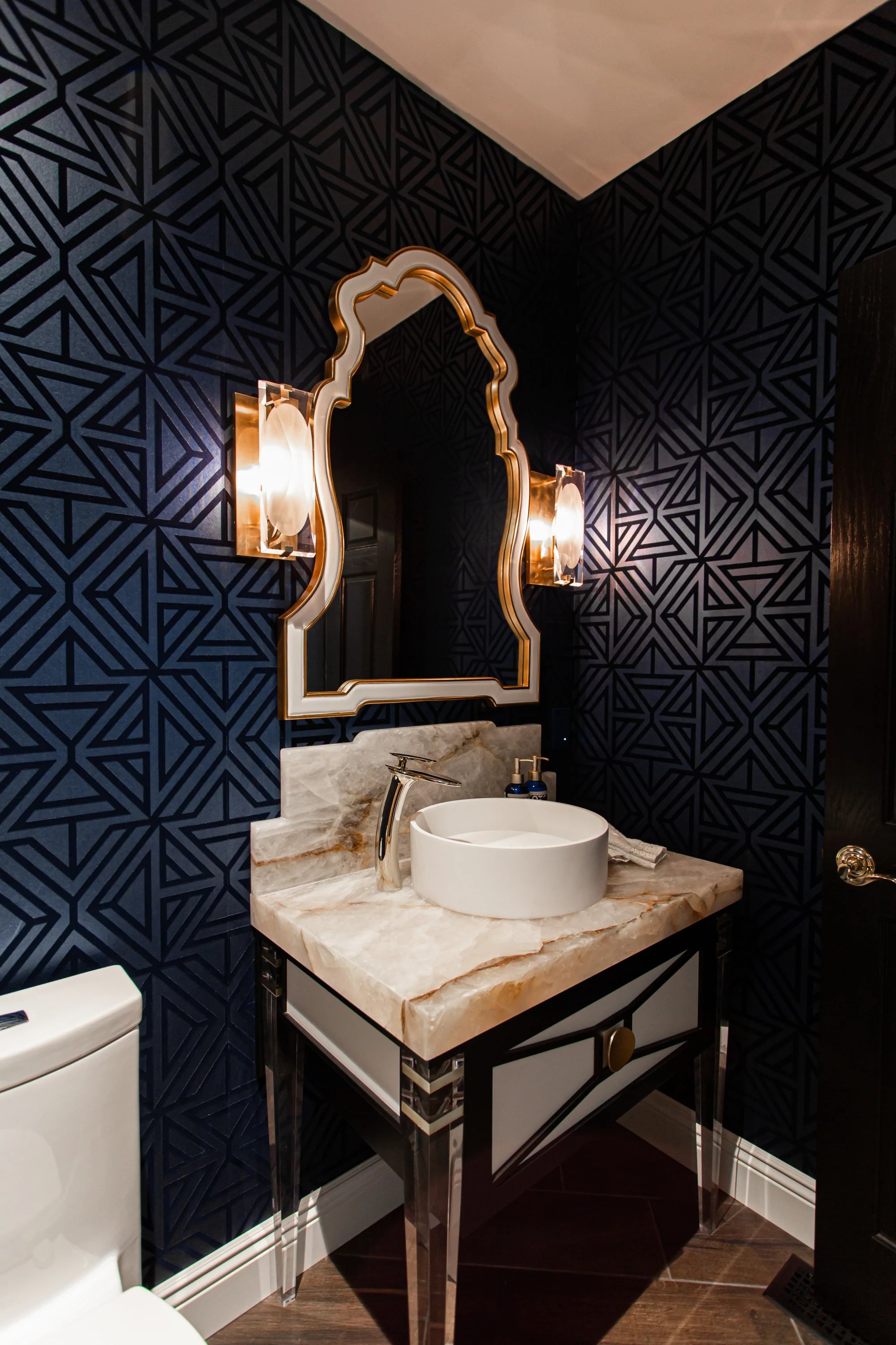 - Added a custom vanity and stunning wallpaper to the powder bath