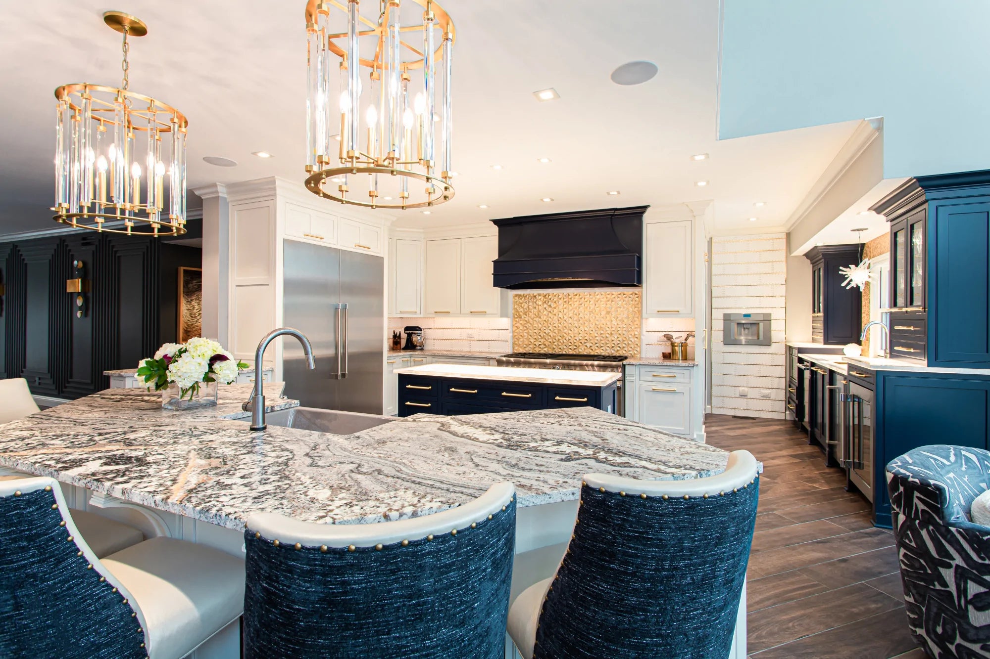 - Redesigned the kitchen layout with 2 islands and built-in wine fridges