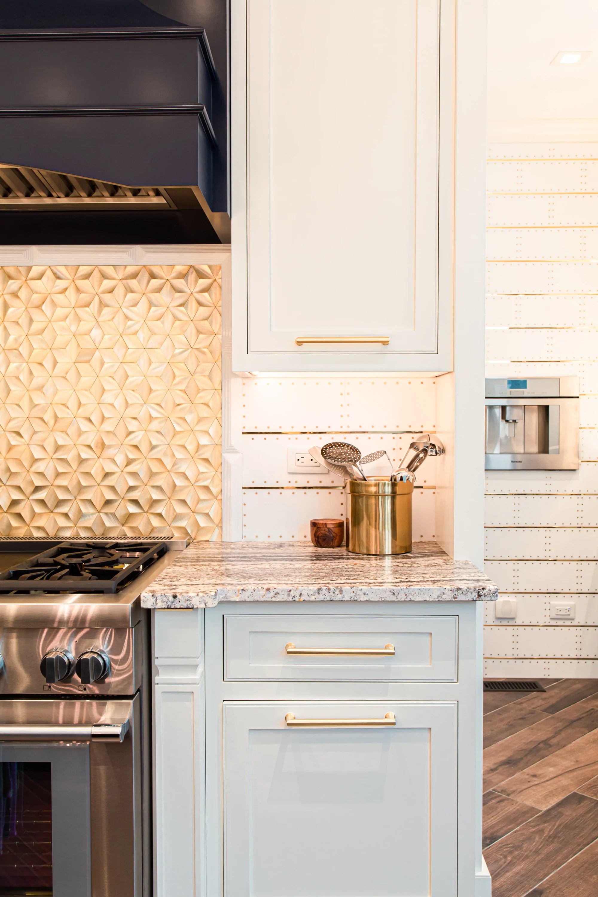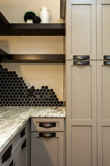 - Added a hidden pantry and built-in coffee machine with brass detail
