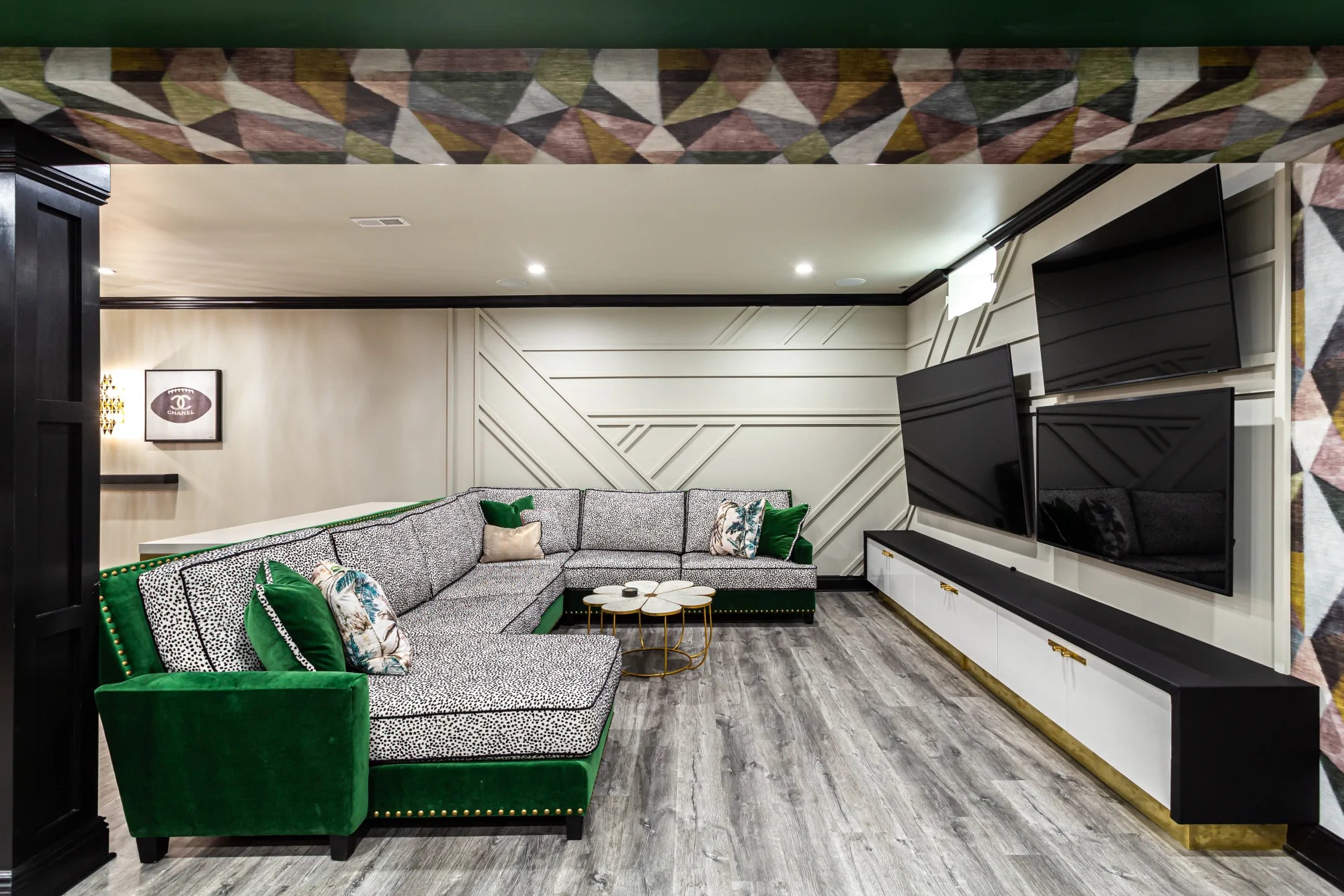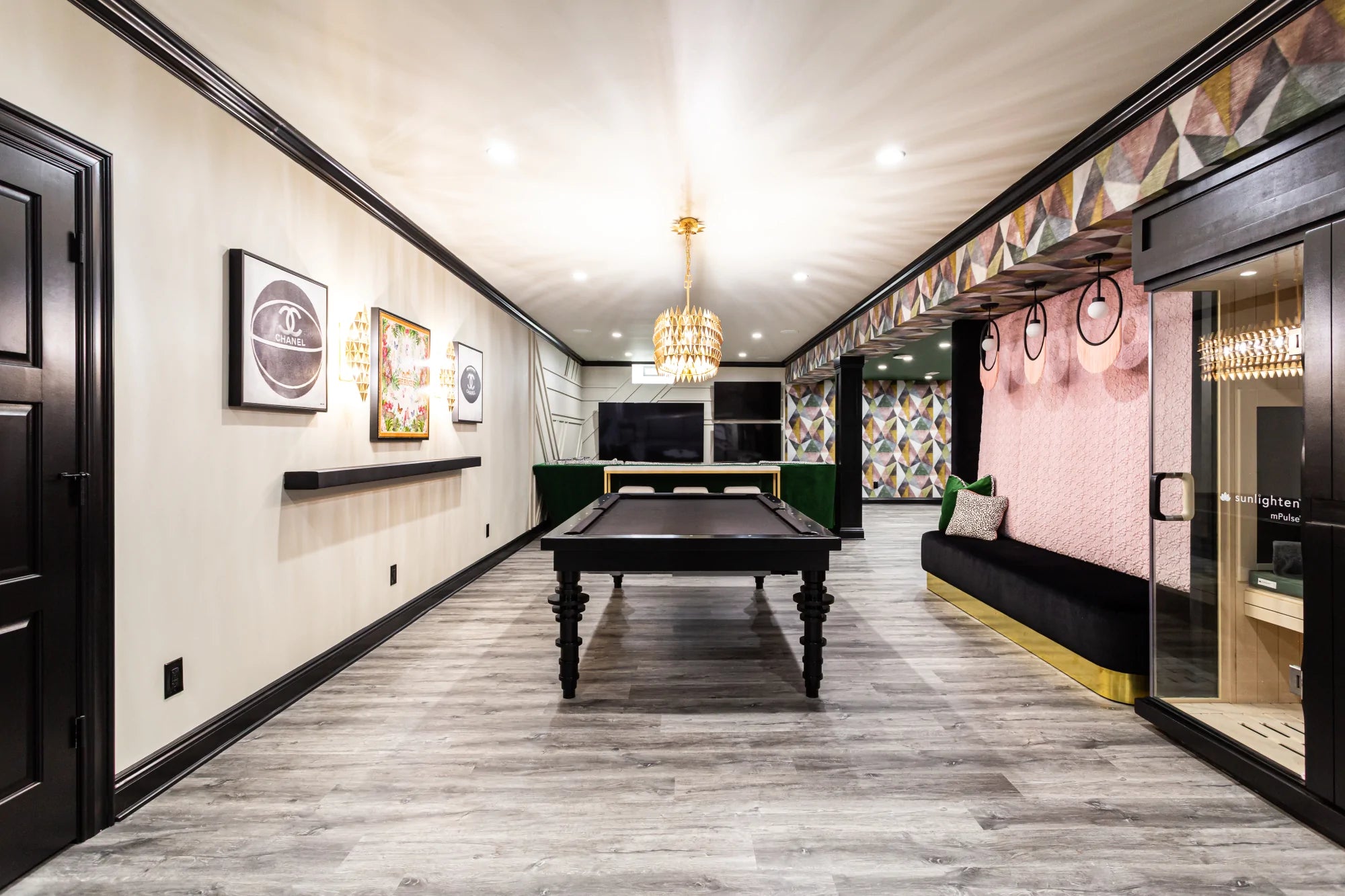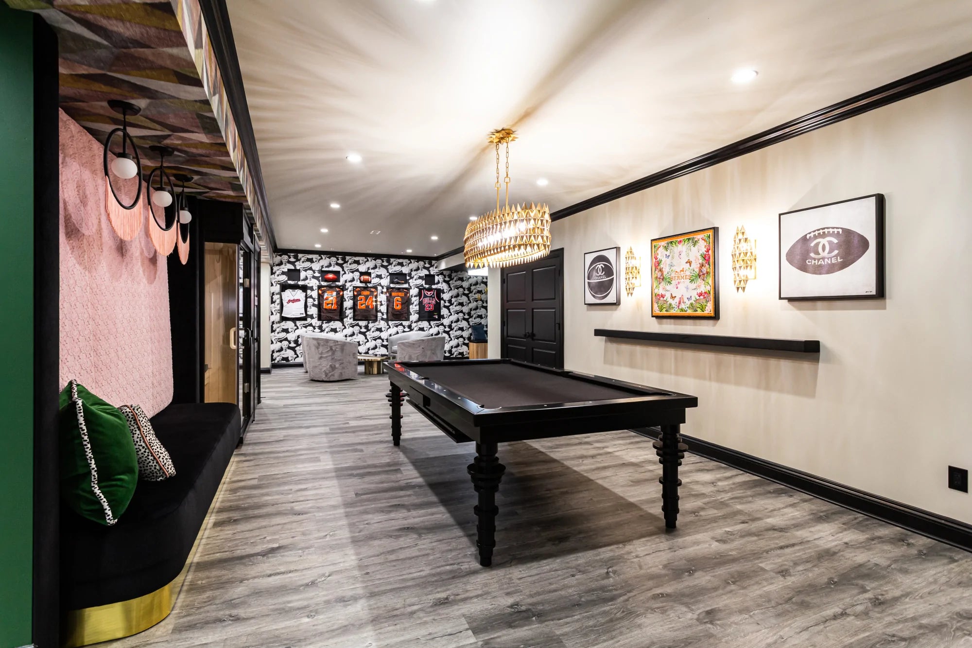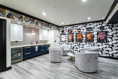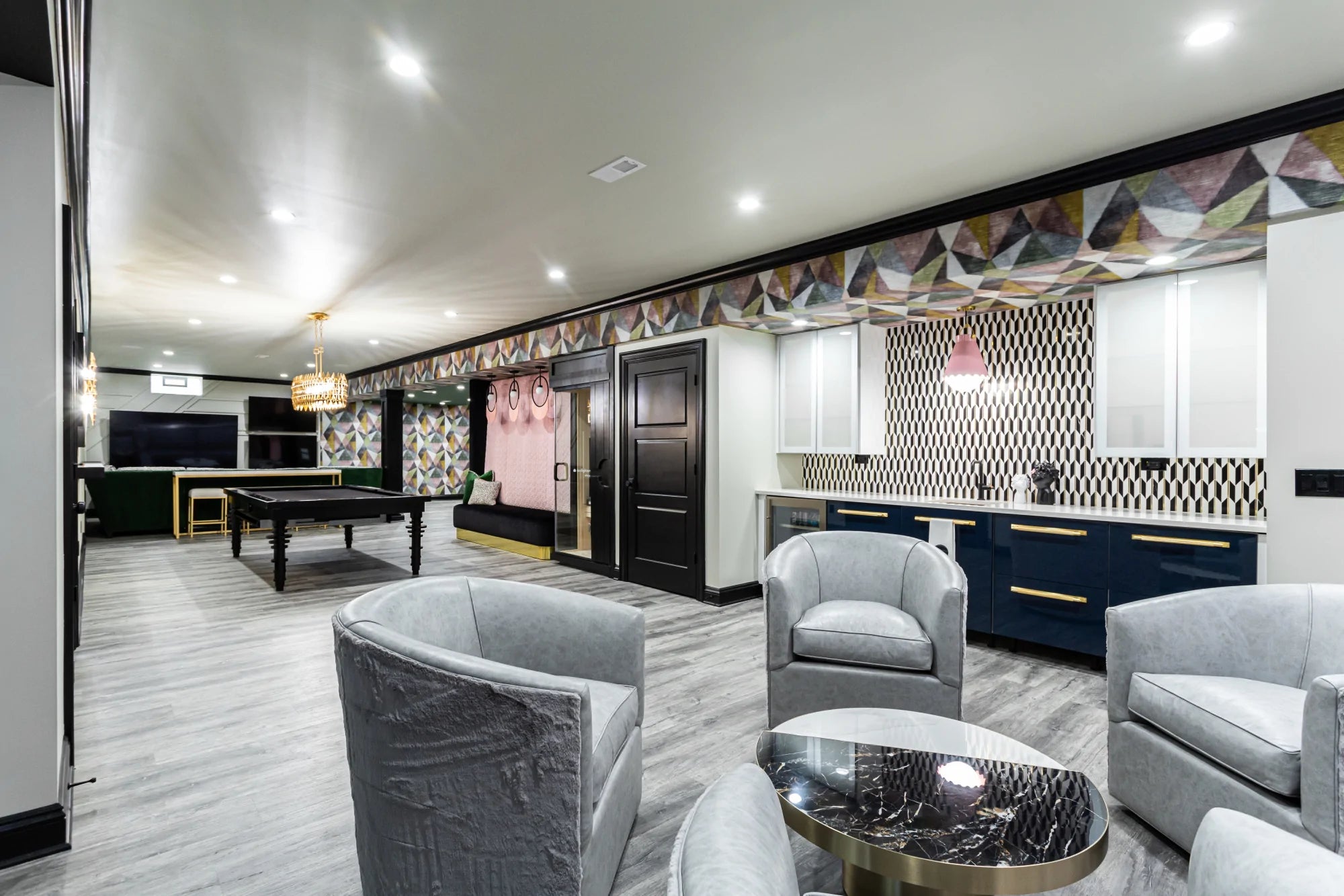 - Stunning lounge with art deco-inspired furniture, millwork, and wet bar
