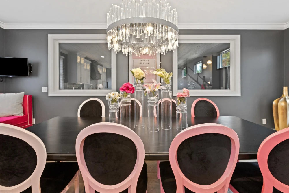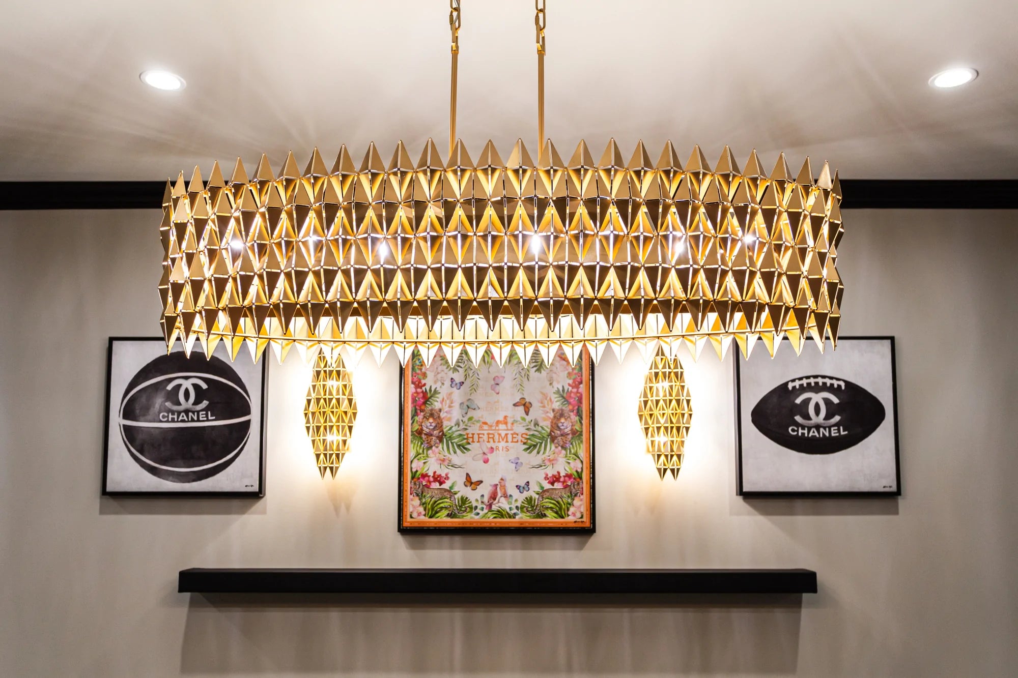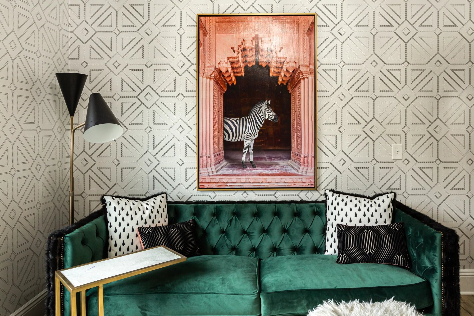 - Custom furniture, whimsical wallpapers, and eclectic lighting in every room